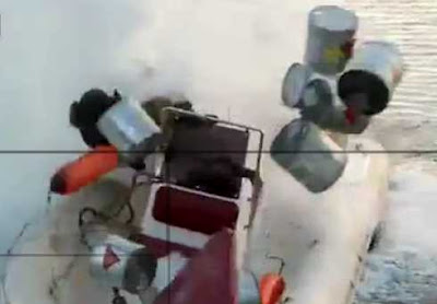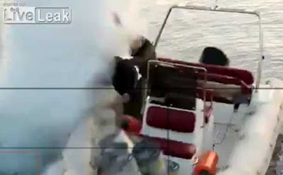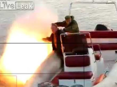 雖然炸魚在世界上許多地方仍是不被允許的捕魚方式,但仍有不少人貪圖方便,用這種破壞環境的方式來捕魚。日前俄羅斯有2名男 子拿著手榴彈,在一艘快艇上想體驗炸魚感覺,沒想到手榴彈才拋出落水瞬間就爆炸,手榴彈炸魚把他 們炸的人仰馬翻,手榴彈炸魚連船上幾個大金屬筒都被震飛。