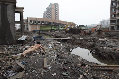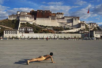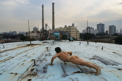 艾未未的朋友、中國名攝影師區志航以行為藝術「裸露」社會 假面目,中宣部禁止報道某些社會事件,他就跑到新聞現場赤身露體做掌上壓,照片在內地網絡瘋傳,發人深省。最近他來港,在涉歧視港人的 D& G門外、僭建的唐英年大宅、涉呃房津的麥齊光家外赤條條做掌上壓,坦言「不做不舒服」。