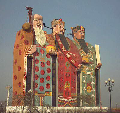 相 傳三位神仙的所在地──燕京區天子莊園,在古時是皇帝的御駕行宮。因此,這裡距北京代表景點天安門,也不過約三十分鐘車程。嚴格來說,這一帶 應該是非常優 質的新興社區,除了以三位神仙為造型的建築物之外,這裡其他周邊的環境,都是高級大廈社區與獨棟別墅。因此,說直白一點,這個「中西合併」又 「古今對比」 的社區,真的看起來挺突兀的。