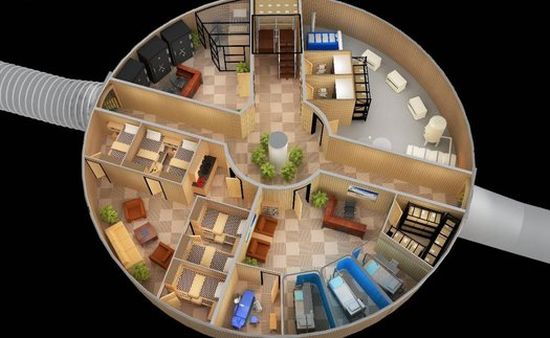 由建築師賴瑞荷爾(Larry Hall)一手打造的「末日避難所 Doomsday shelter」耗資700萬美金 (約新台幣2億台幣)。避難所外牆厚度3公尺,地下深度達53公尺,總共有14層樓;末日避難所 Doomsday shelter其 中7層規劃成為公寓,其餘樓層則有游泳池、電影院、圖書館,醫療中心和學校。