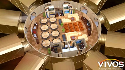 末日避難所 Doomsday shelter除了上述設備之外,避難所還建有室內農場,可以提供70人份的魚類和蔬菜,還 可囤積5年份的乾糧;電力供應方面則是使用風力發電和發電機,末日避難所 Doomsday shelter並有嚴密的防盜系 統,無須擔心財物遭竊。
