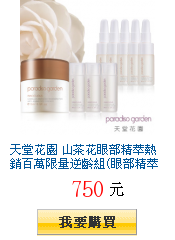 山茶花眼部精萃15ml上市3週銷售破萬瓶,母親節加碼送精萃25ml+滲透乳24ml原價4090元特惠750元超值18折。添加珍貴寶石山茶花漿,激