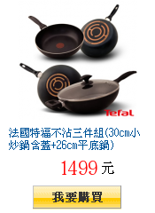 法國特福不沾三件組(30cm小炒鍋含蓋+26cm平底鍋)
