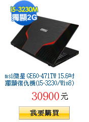 - msi 微星 GE60-471TW 15.6吋獨顯復仇機(i5-3230/Win8)