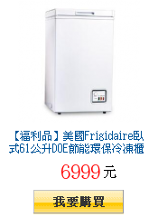 【福利品】美國Frigidaire臥式61公升DOE節能環保冷凍櫃