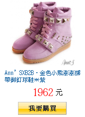 Ann’SXB2B.金色小熊澎澎綁帶鉚釘球鞋*紫