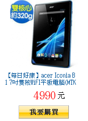 - 【每 日好康】acer Iconia B1 7吋雙核WiFI平板電腦(MTK8317T)