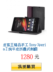 皮 套王精品手工 Sony Xperia Z 純牛皮折疊式側翻