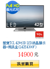 聲 寶TCL 42吋3D LED液晶顯示器+視訊盒(L42E4300F)