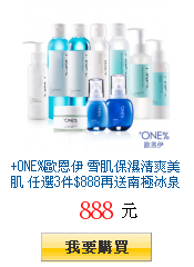 +ONE%歐恩伊 雪肌保濕清爽美肌 任選3件$888再送南極冰泉晚安凍膜15ml