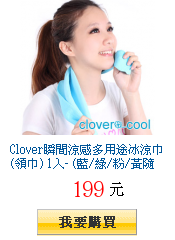 Clover 瞬間涼感多用途冰涼巾(領巾) 1入- (藍/綠/粉/黃隨機出貨)