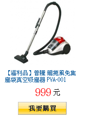 【福利 品】普騰 龍捲風免集塵袋真空吸塵器 PVA-001