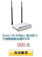 - Tenda 11N 300Mbps 高功率大天線無線路由器W309R