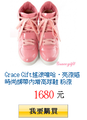 ★部落客花猴穿搭款Grace Gift搖滾嘻哈.亮漆感時尚綁帶內增高球鞋 粉漆